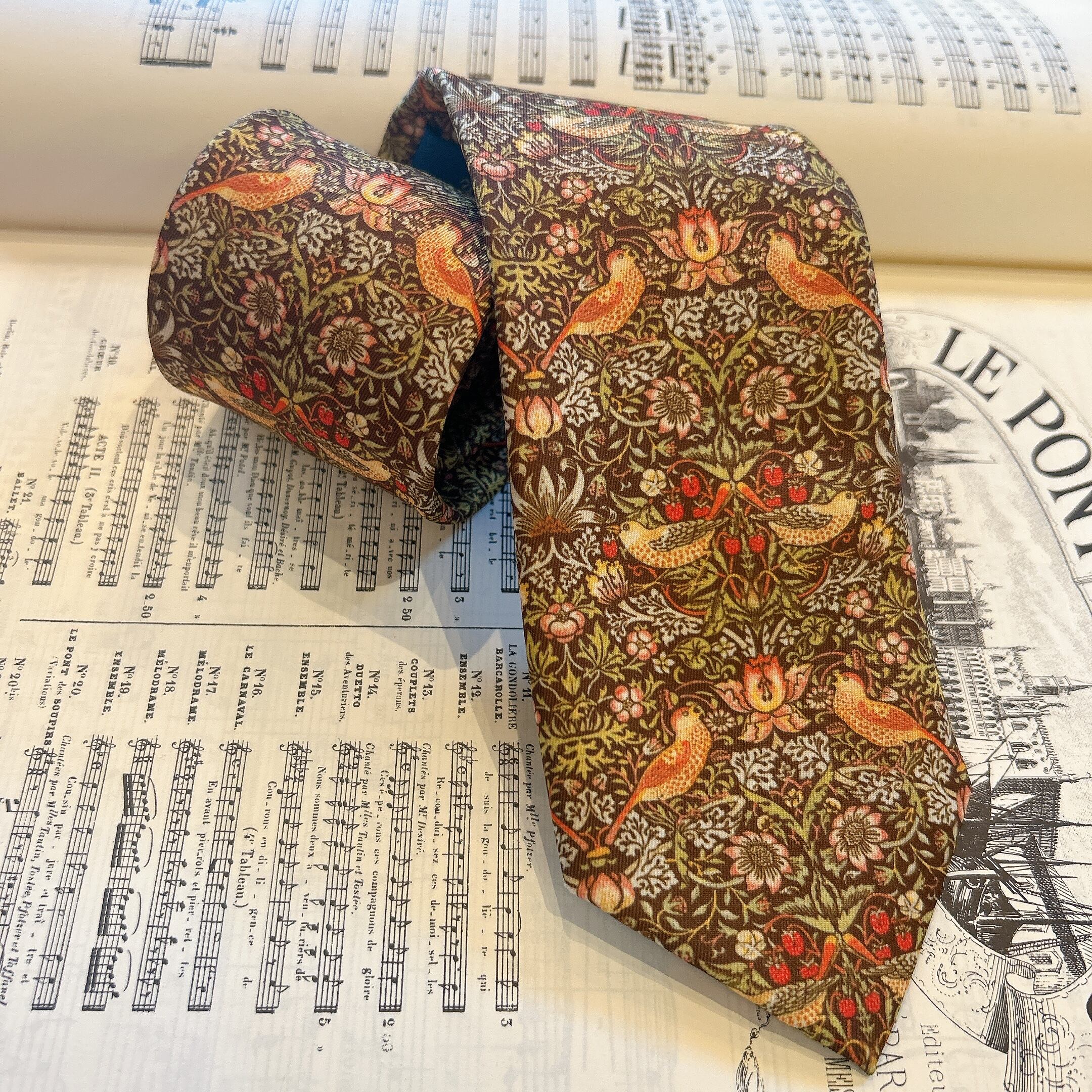 イチゴ泥棒(strawberry thief)やゴールデンリリーなどのデザインを使用した高級感のあるネクタイです。