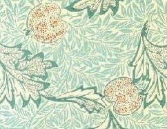 アカンサスの葉と斑点のあるリンゴの壁紙「Apple」(アップル)。もともとは1877年にモリスによって最初にデザインされ、娘の作業室の壁を飾るのに使用されました。